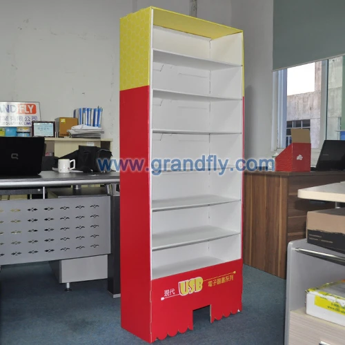 产品基本描述:产品名称:电子图书纸陈列架,纸货架,纸展示产品编号:FDS-003产品规格:630×250×1543MM产品材质:优质粉灰纸+高强度瓦楞坑纸印刷方式:CMYK胶印
